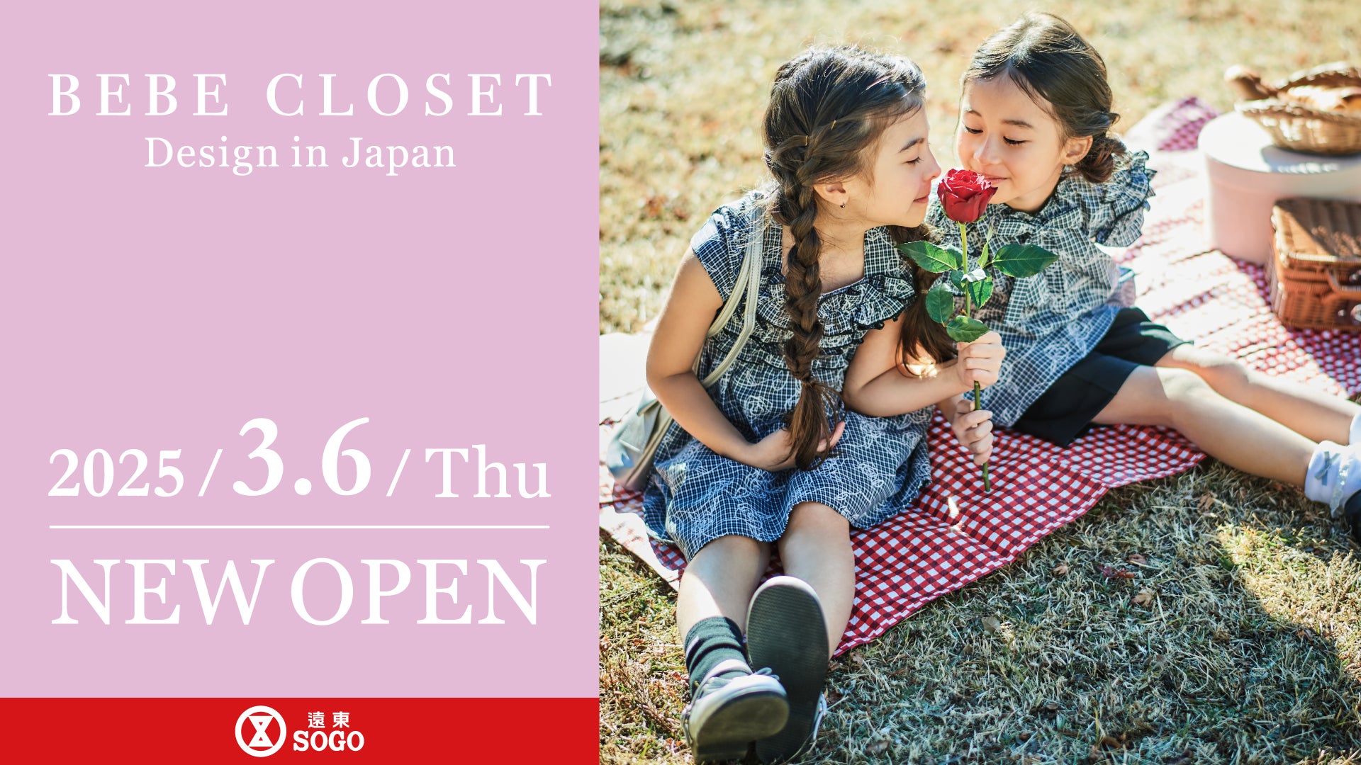 子供服ブランド「BeBe(べべ)」を運営するBEBE CO.,LTD.は、2025年3月6日(木)に忠孝SOGO館5階で「BEBE CLOSET」台湾2号店をグランドオープンします。