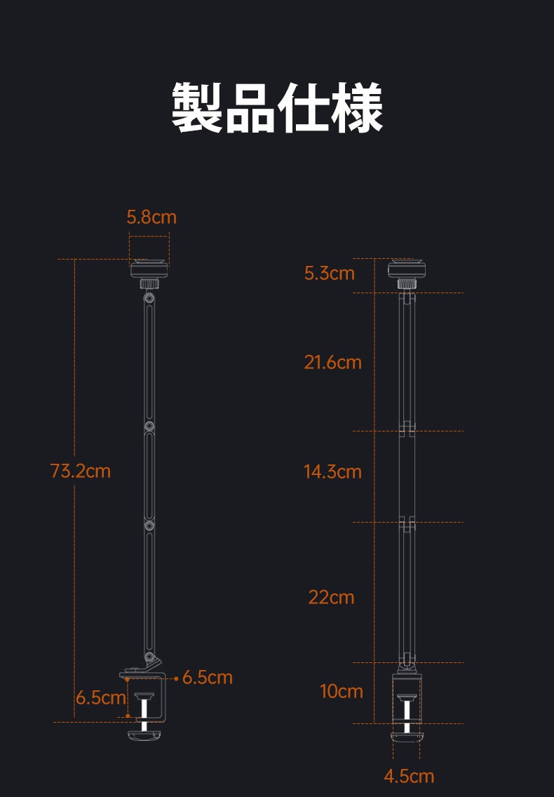 クランプ式のデザインで、60mm以内のテーブルに適用可能です。