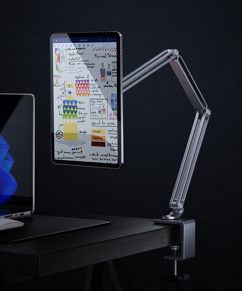 デスクのスペースを広く使ったり、タブレットを見やすい位置に移動させたりして、作業効率が向上します。