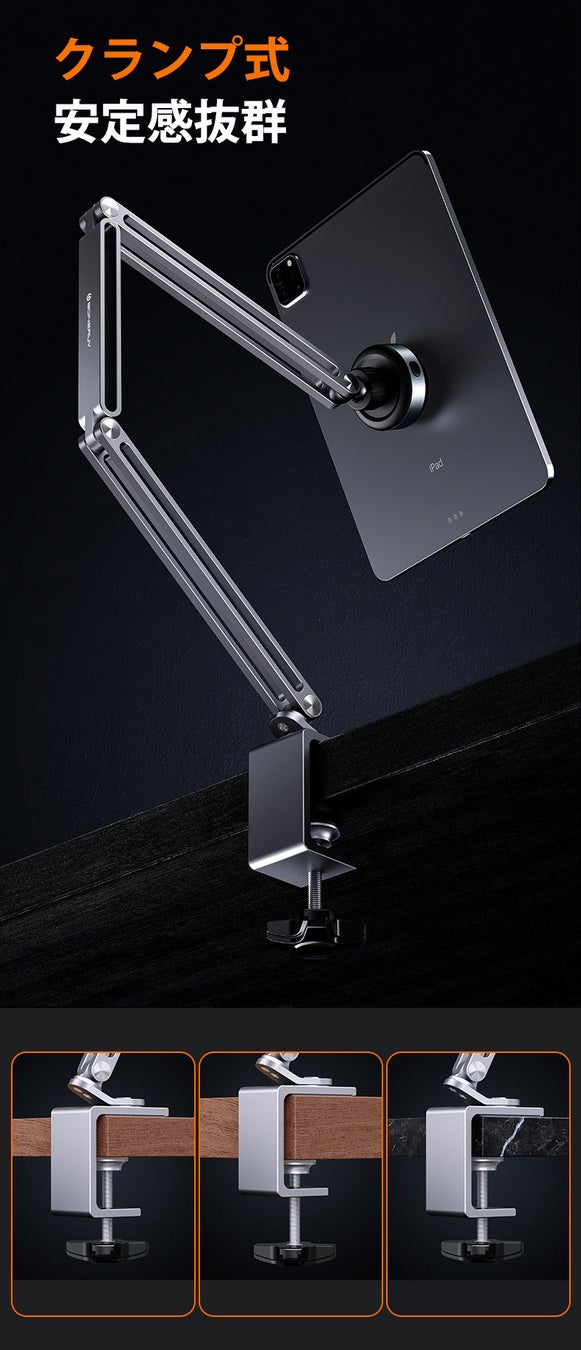 発売開始!1秒でガッシリ自動真空吸着!角度&高さ調整可能、安定性抜群の多機能アームスタンド「K67」はCAMPFIREに登場!