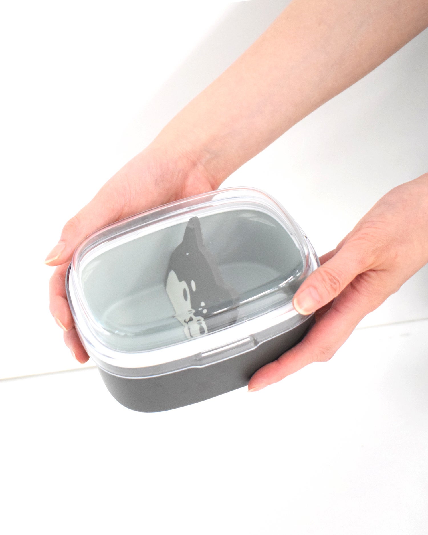 フタはドーム型の形状なので量の調節がしやすく、からあげなどのごろっとしたおかずもつぶれにくいです。 -