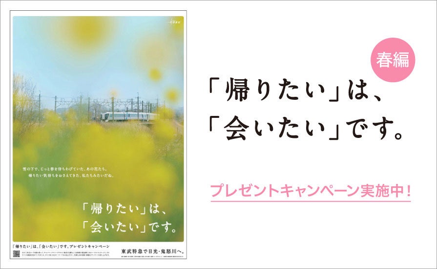 東武特急ポスター「帰りたい」は、「会いたい」です。春編 プレゼントキャンペーン実施中です!
