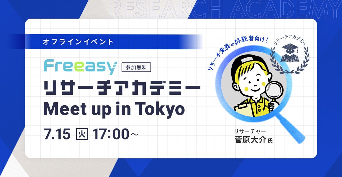 Freeasyでは、リサーチに関するノウハウを啓蒙するため、リサーチャーの菅原大介氏を講師に迎え、2024年11月より半年間の予定で、『ブログの発信+オンラインセミナー』の定期開催と『ミートアップ』の不定期開催で構成される「Freeasyリサーチアカデミー」を開催中です。
