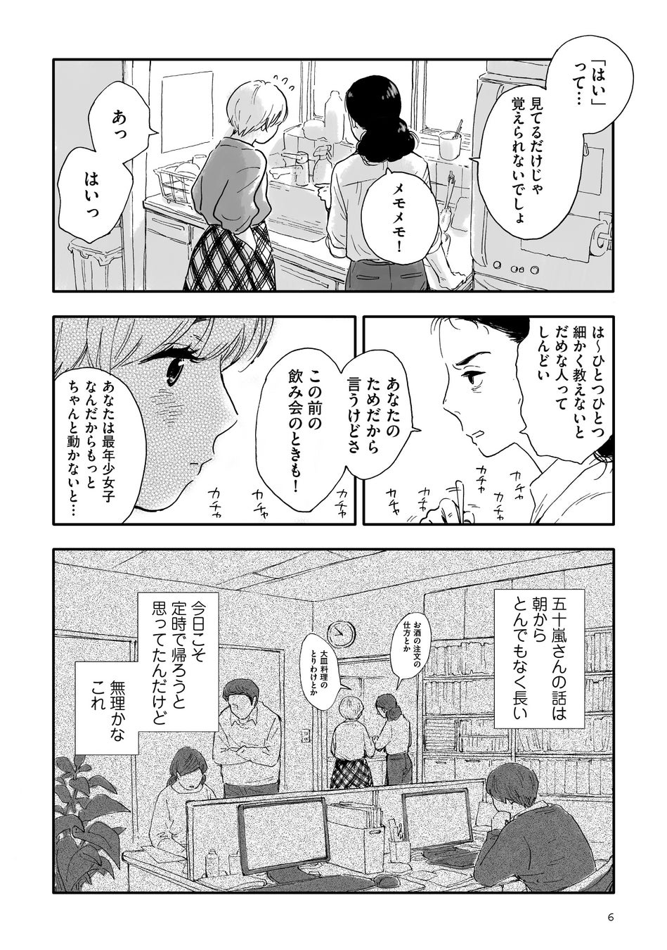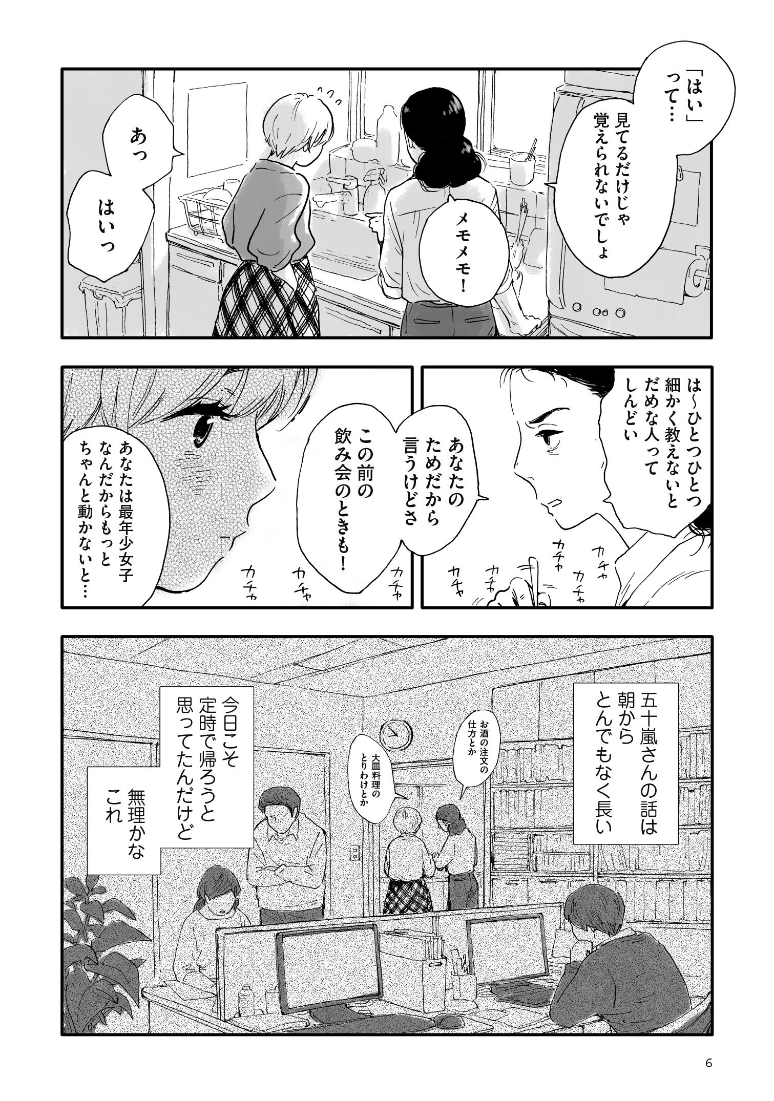 どんな人も心に傷やストレスを抱える現代社会。描かれるのは、福子だけでなく、クールな同僚の望月や、お局の五十嵐などなど。それぞれの抱える問題が、おいしい食べものと一緒にほんの少し癒やされる。そんな奇跡のような安らぎが、洗練された絵で描かれます。