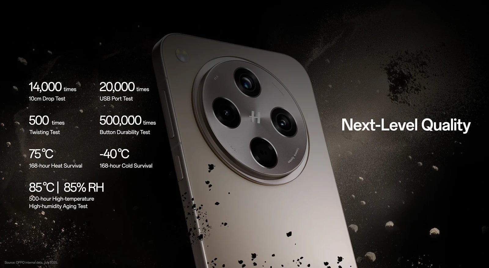 【2025年11月14日中国・深圳】-OPPOは、ハードウェアとソフトウェアの両面でこれまで以上の高品質を実現し、よりユーザーが快適にスマートフォンを使用するための新たな取り組み「Apex Guard(エーペックスガード)」を発表しました。この取り組みによって、OPPOは、一般的な日常での使用範囲を超えて、製品寿命の長寿化や、業界のこれまでの基準を更に上回る厳しい基準の確立を目指します。
