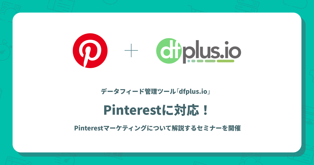 株式会社フィードフォース(所在地:東京都文京区、代表取締役:塚田 耕司)が提供するマーケターのためのデータフィード管理ツール「dfplus.io」は、ピンタレスト・ジャパン合同会社が提供するビジュアル探索ツール「Pinterest」に対応開始いたしました。