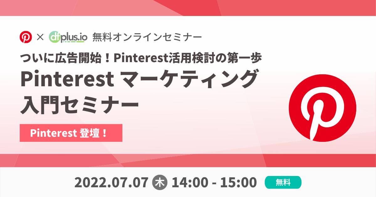 また、Pinterestを活用したマーケティングについて解説するセミナーを7/7(木)に開催いたします。Pinterestが登壇する無料のオープンセミナーとしては国内初となり、マーケターがいち早くPinterestの活用を検討できる機会となっています。