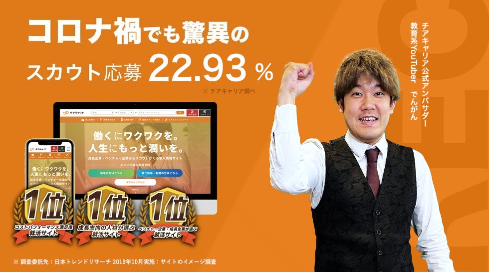 この度、新卒向けの就活サービス「チアキャリア」は、理系教育YouTuberである「でんがん」さんを公式アンバサダーに任命したことを発表します。