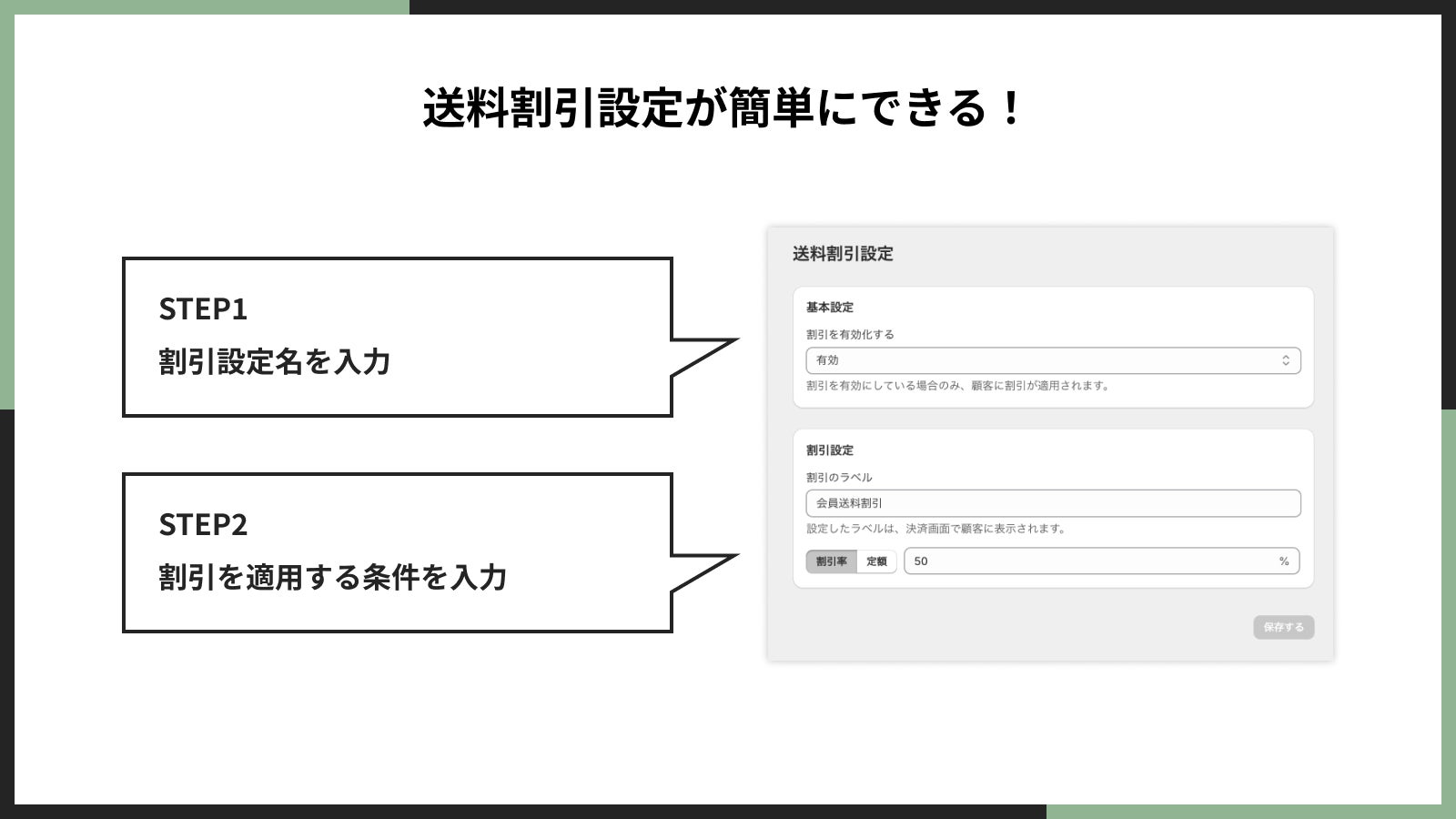 「シンプル会員送料割引|お手軽ログイン送料無料」では、簡単に送料割引を設定できます。