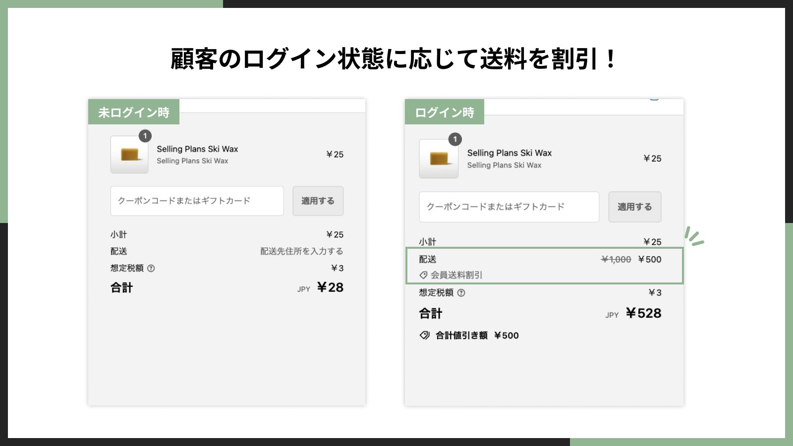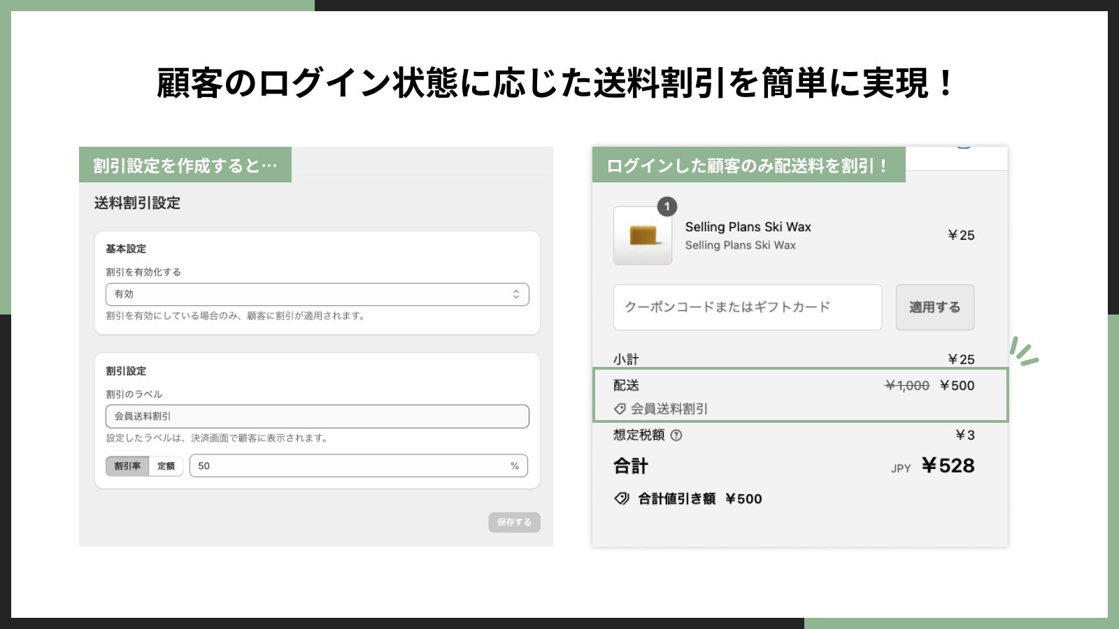 ■顧客のログイン状態に応じた送料割引を簡単に実現!