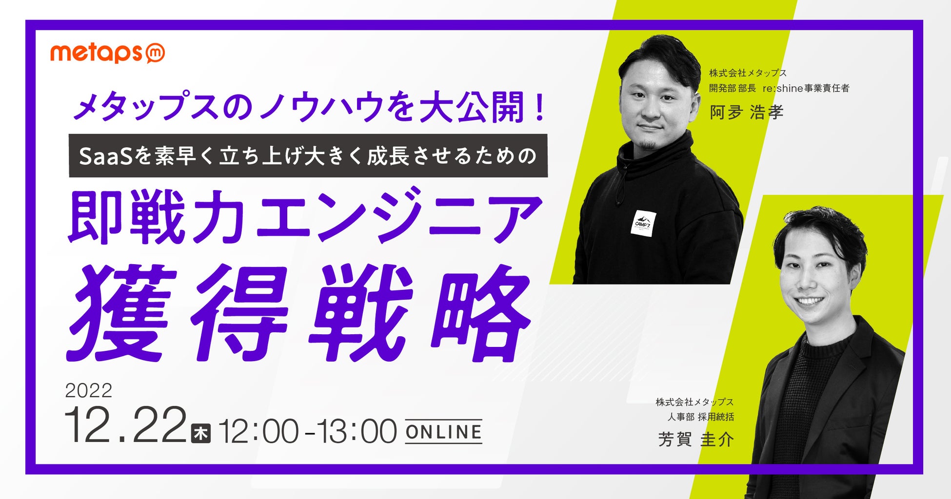 SaaS企業採用担当者必見!『SaaSを素早く立ち上げ大きく成長させるための即戦力エンジニア獲得戦略〜メタップスのノウハウを大公開します〜』 を開催