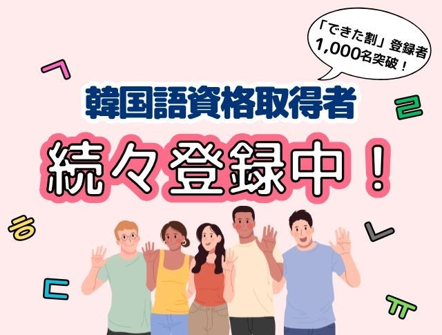 K Village韓国語、スタサポ第一弾「できた割」登録者数が1,000名を突破!韓国語資格取得者が続々と登録中!