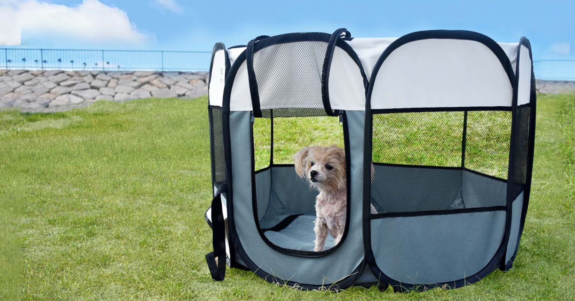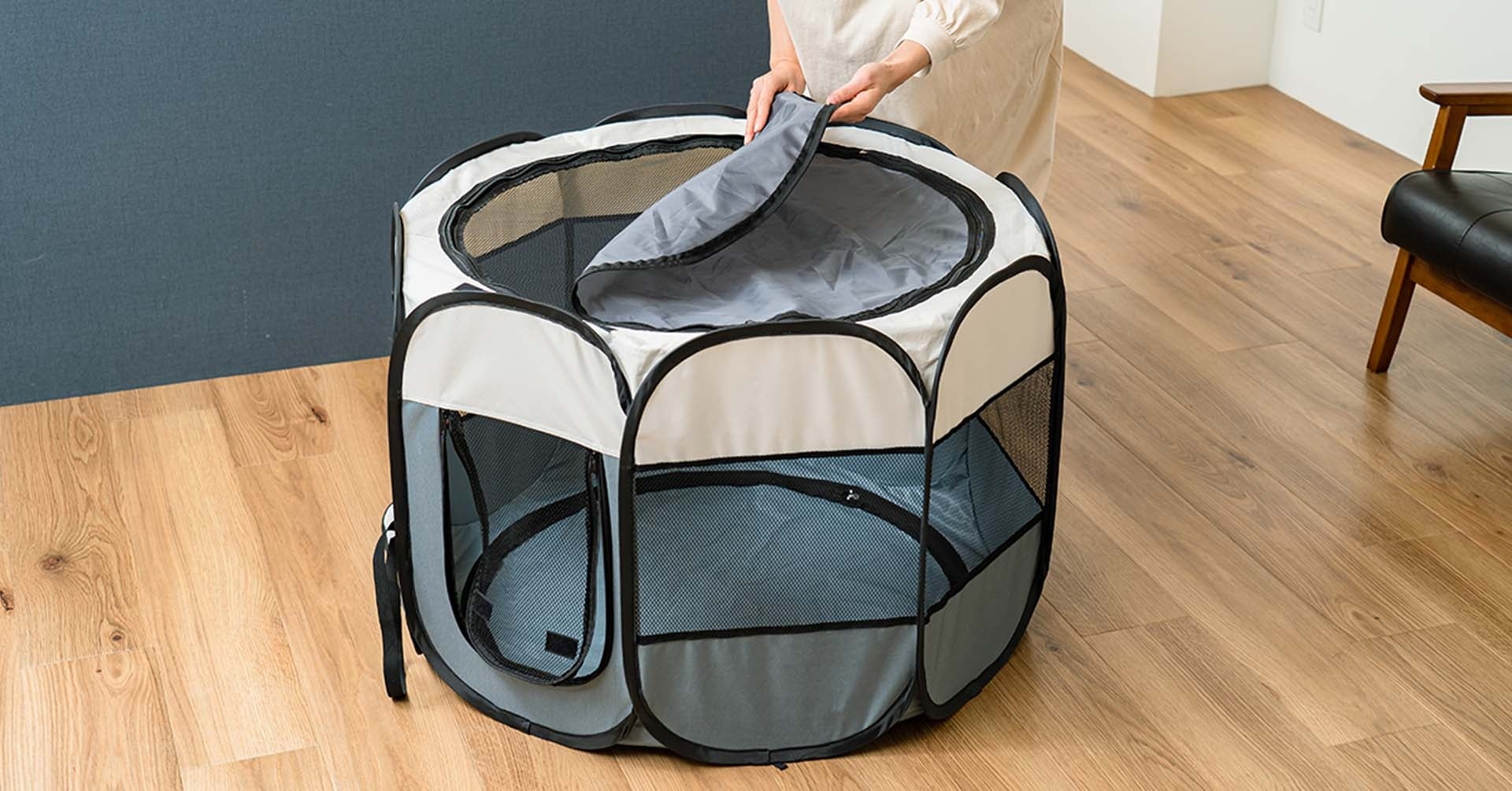 自宅でも移動・イベントでも大活躍する、折りたたみ式のペットサークル。