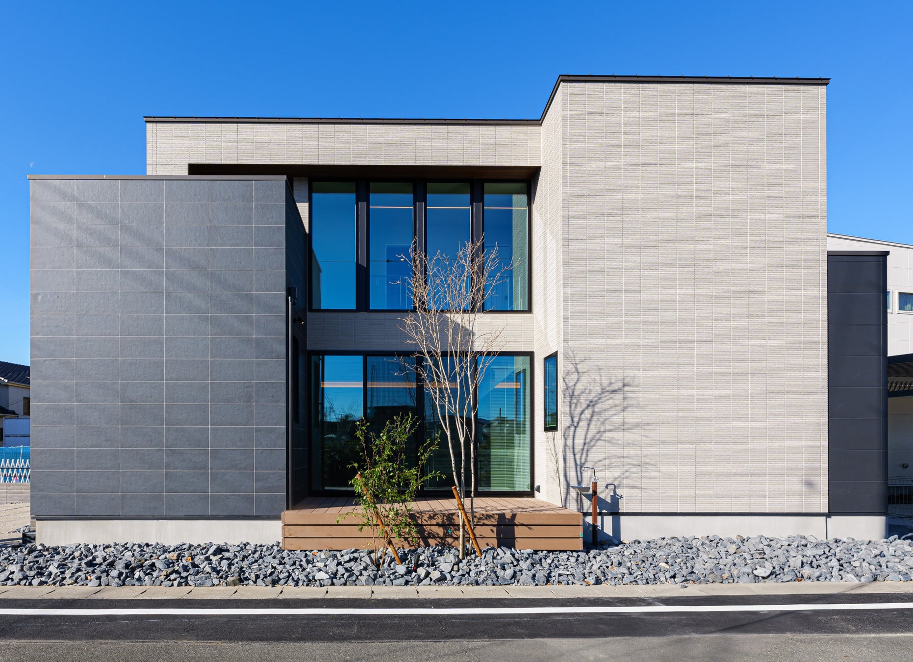 マチかど展示場は、実際の住宅地に建てられたリアルサイズのモデルハウスで、住宅展示場だけではイメージがつきにくい街並みとの調和、敷地の使い方、住宅地における光の採り込み方などをよりリアルに体感できます。