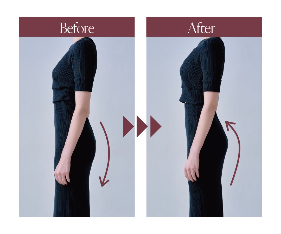上部にお肉を逃すことでヒップトップの位置が上がりぷるんと丸いヒップを作ります。