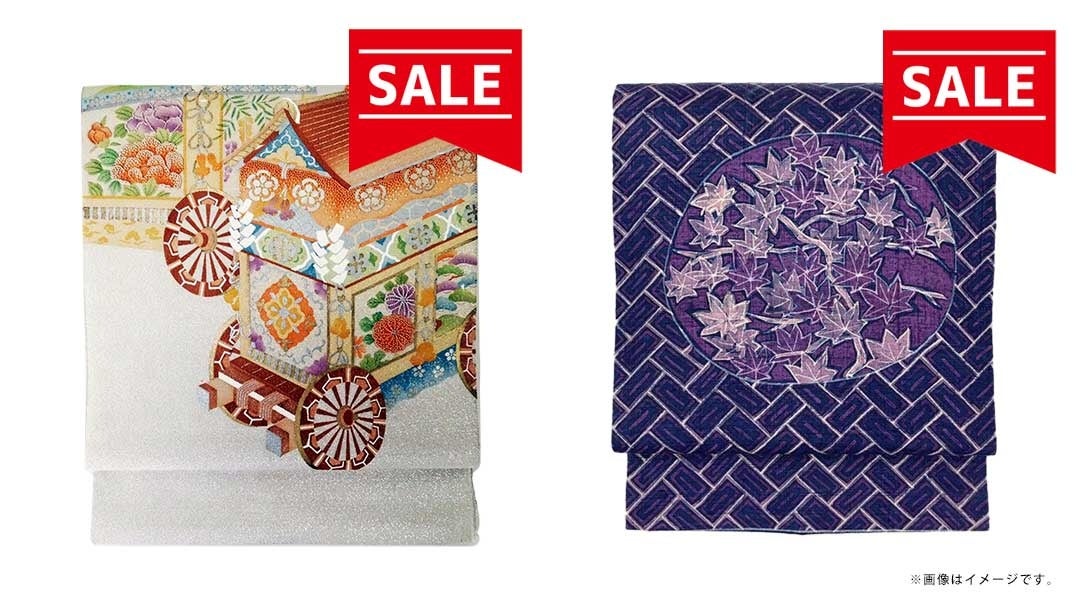 左:京袋帯 銀 多色 祭り 仕立て上がり 55,000円(税込)→27,500円(税込)