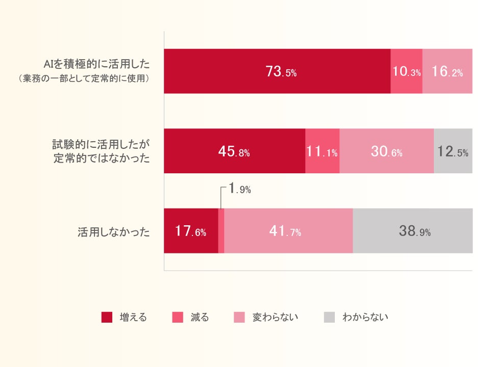 AI積極活用層の7割以上が2025年にAIを業務で活用する頻度が「増える」と回答