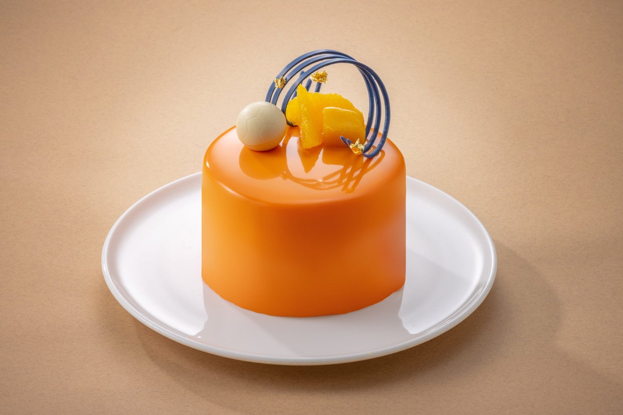 エスパルスのシンボルである“S-PULSE ORANGE”のグラサージュと“DEEP SEA BLUE”のチョコレート装飾で情熱的なビジュアルに。ライムの皮と果汁を練り込んだウィークエンド生地が、爽やかな香りとしっとりとした食感を演出します。
