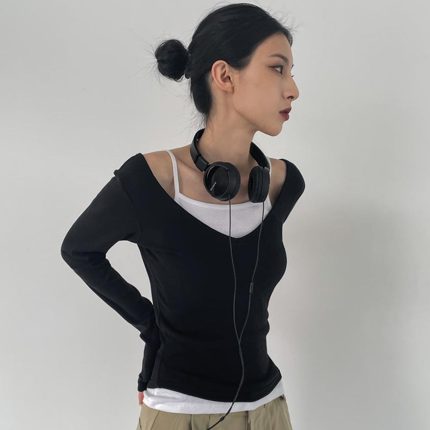 デコルテが大胆に見える仕様なので、ジャケットのインナーにもオススメです。