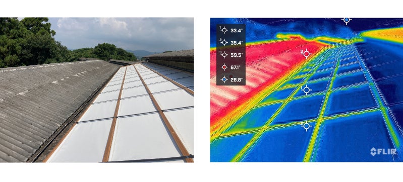 ・表面温度の比較:未施工部分67.1℃→施工部分33.4℃(-33℃以上の温度差を確認)