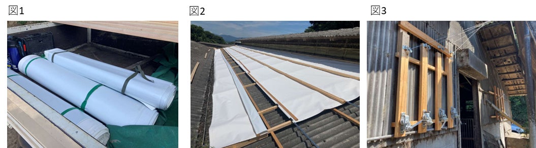 ・豚舎屋根の形状等を考慮し、イクナム研設がSPACECOOLシートを設置(図2)