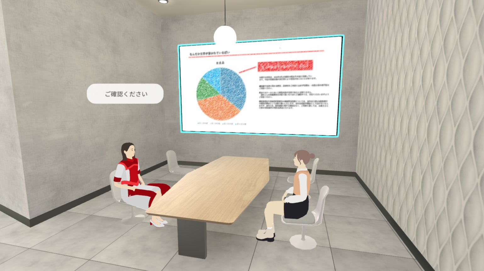 店舗内の応接室にて、アバター行員とバーチャルで面談することができます。プライバシーが守られた空間で、お金に関する一般的な質問やご相談等(※3)が可能です。なお、ご相談は全て匿名、事前予約制となります。