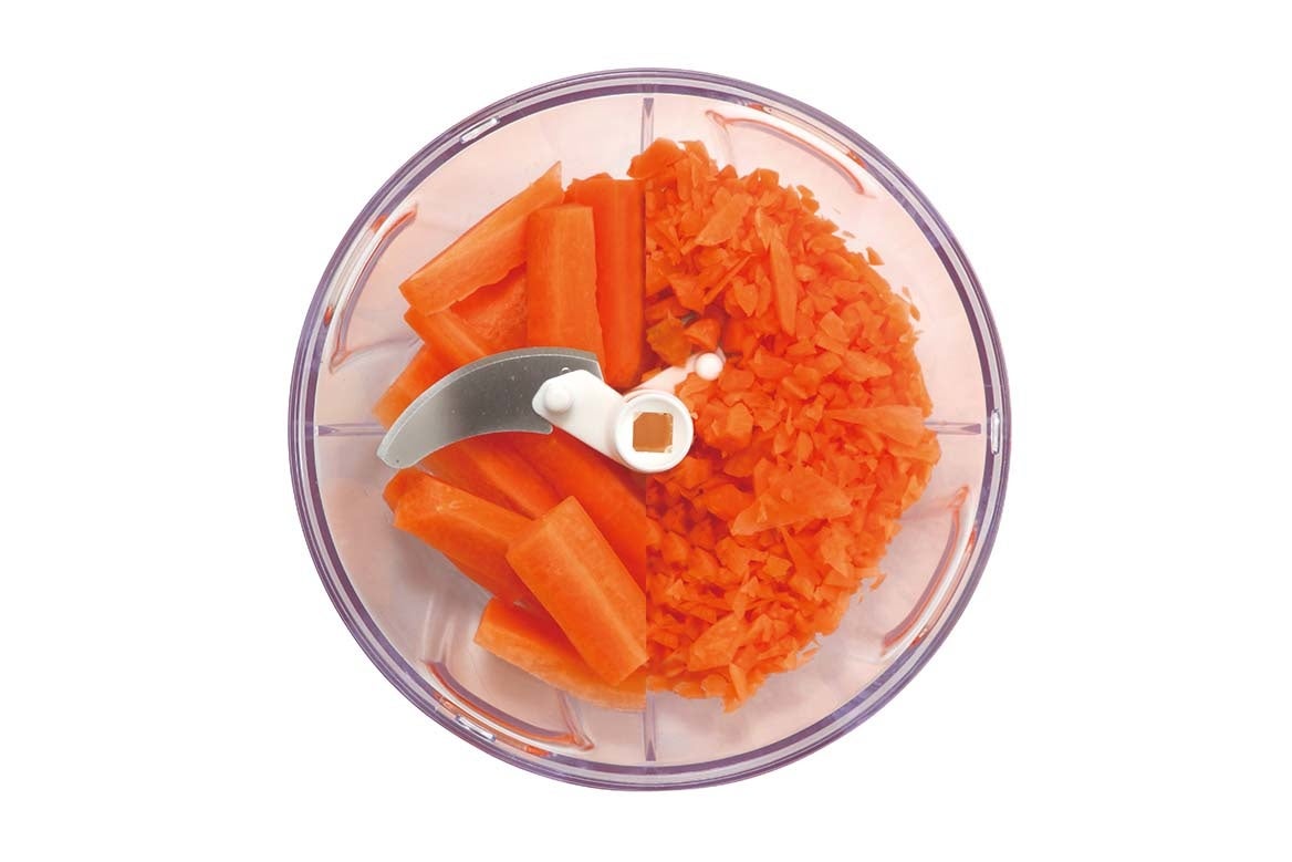 ハンドルを繰り返し引くだけで簡単に野菜や肉類をみじん切りにすることができます。切った野菜が飛び散らず、簡単に短時間でみじん切りを作ることができます。