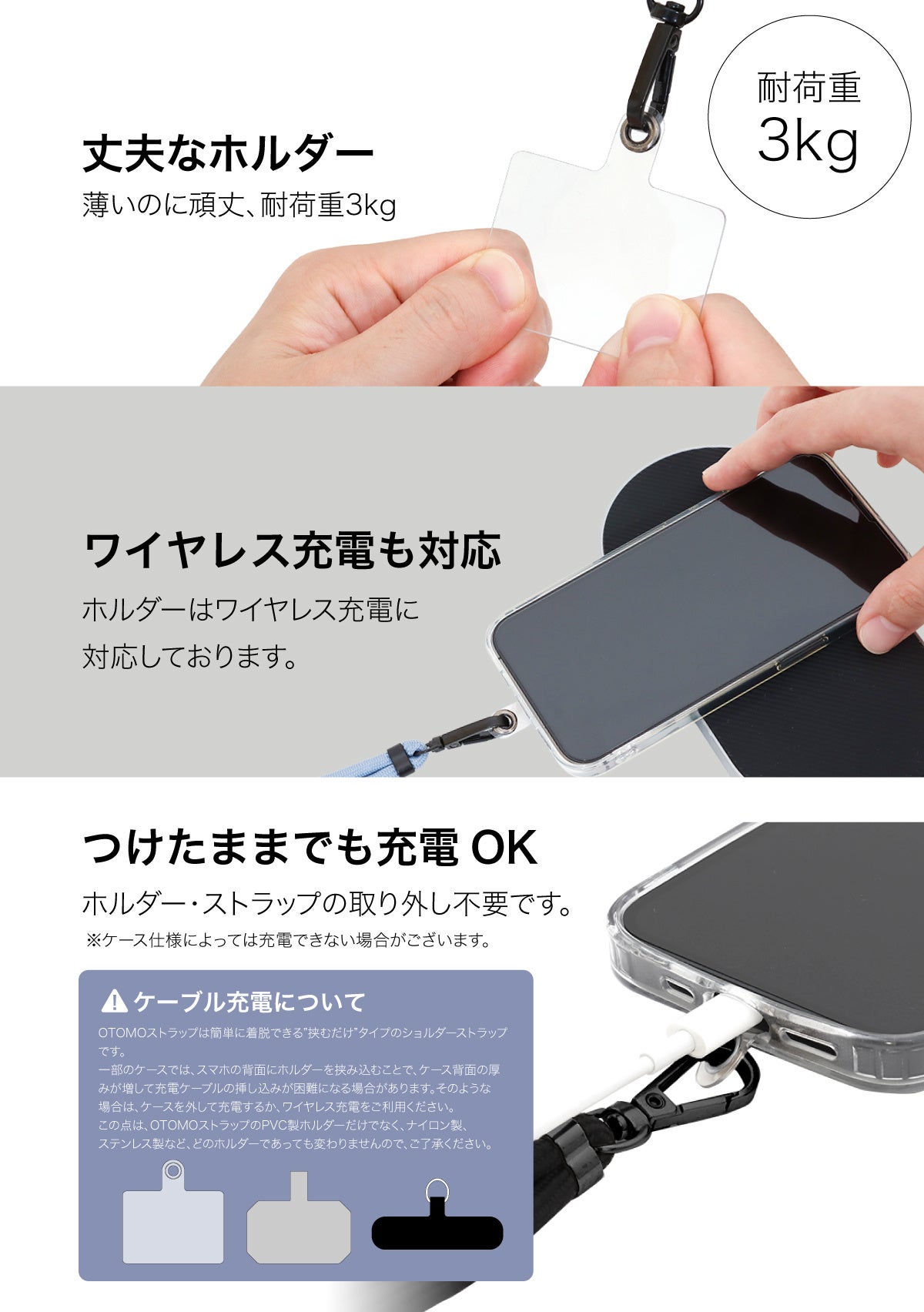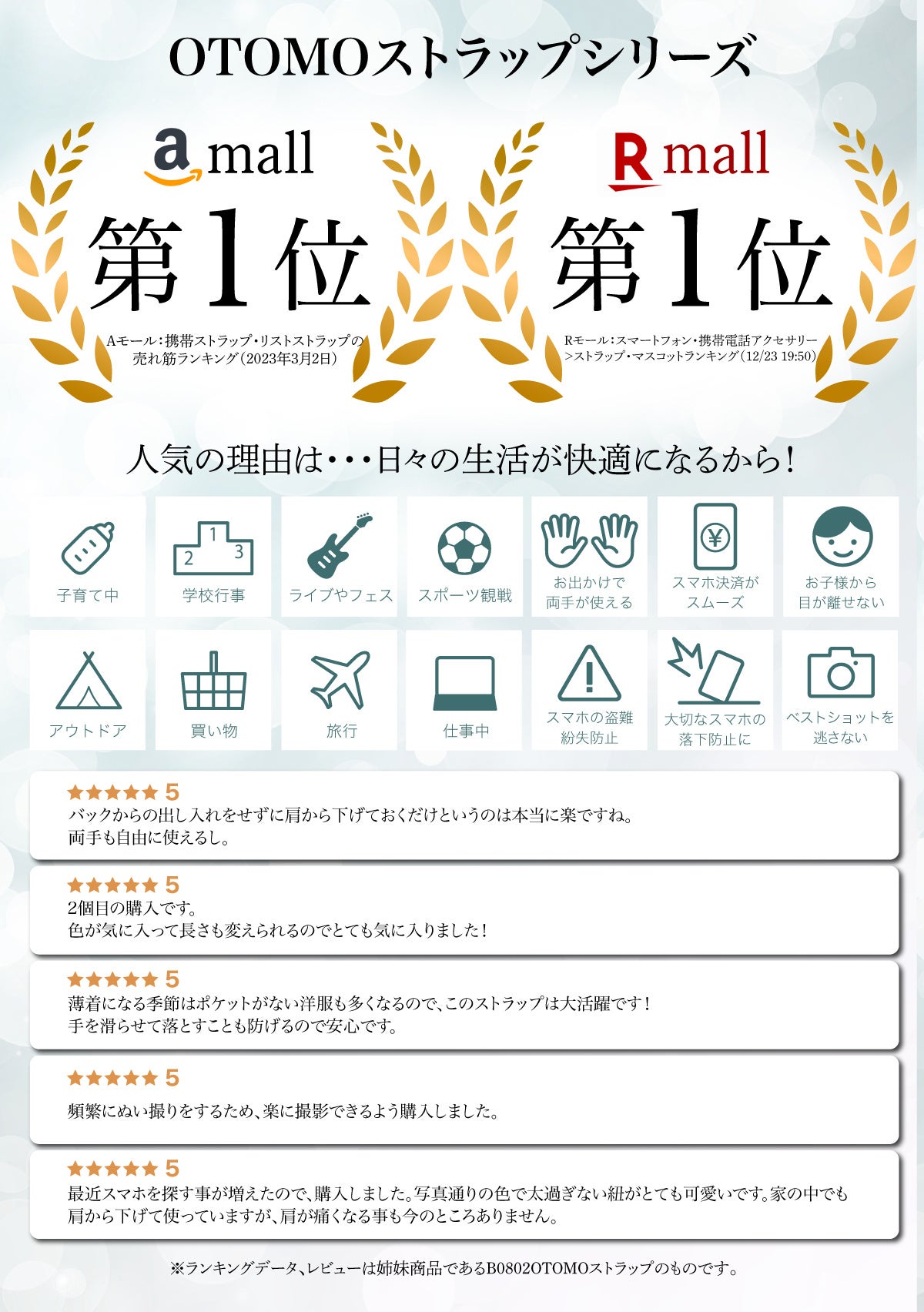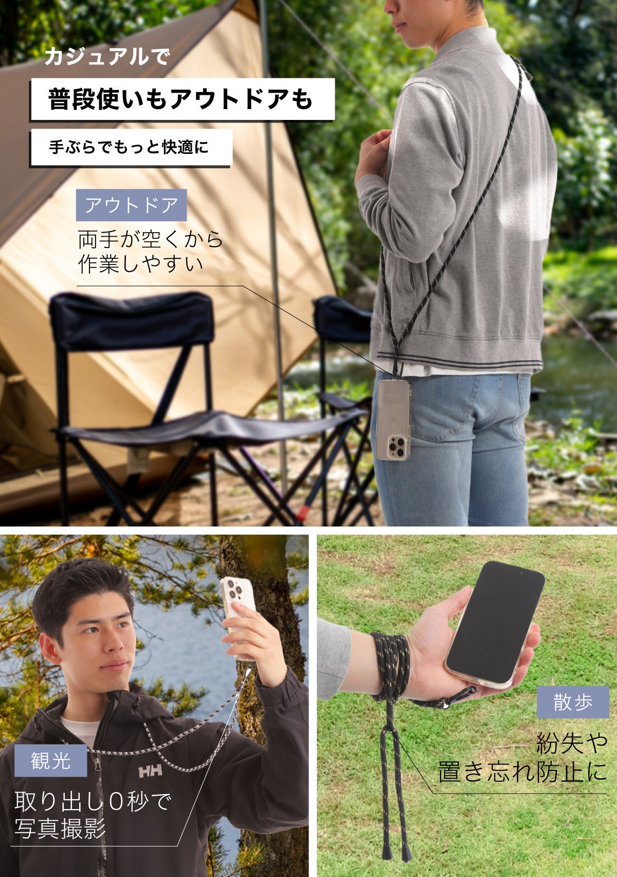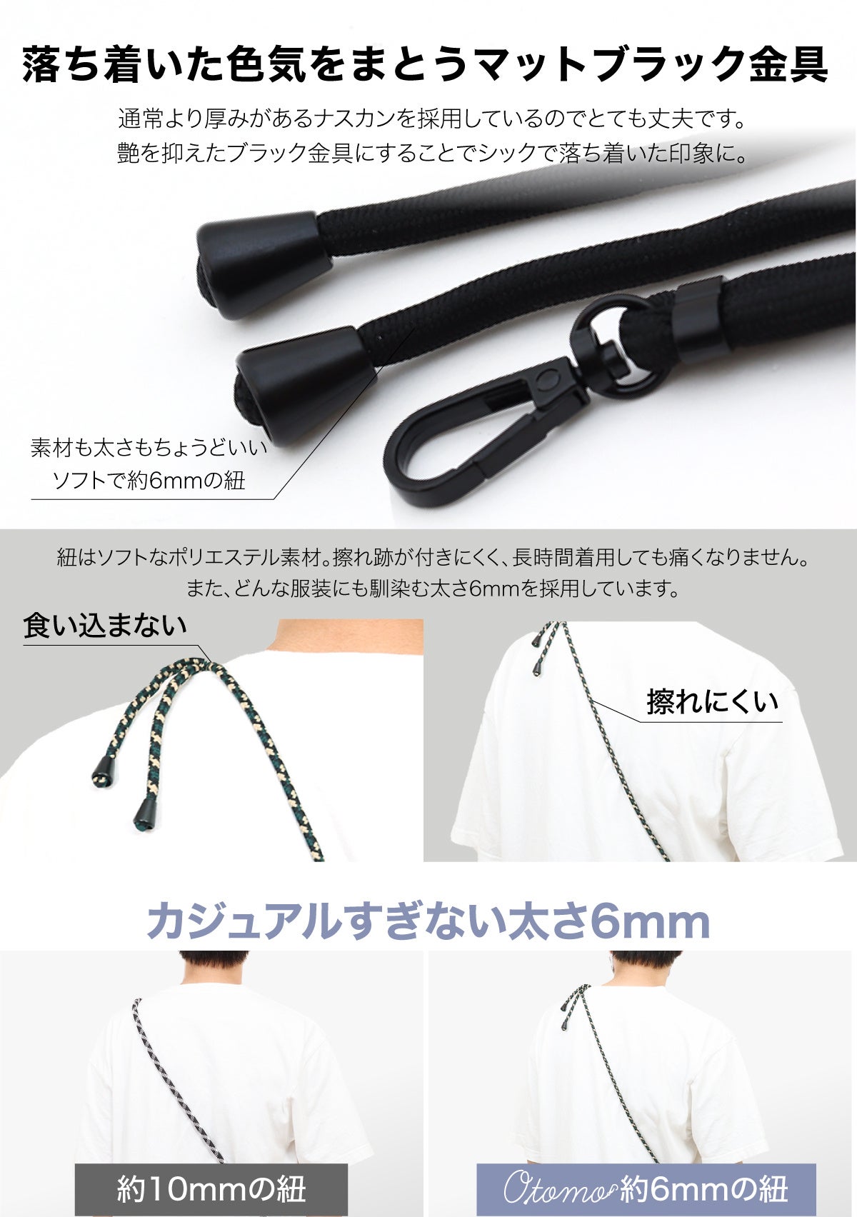 【Amazon&楽天ランキング1位獲得】スマホ ショルダー「OTOMOストラップ」にスーツ(ビジネス)やアウトドアにも馴染むメンズライクな男性向けマットブラック金具が登場!肩掛け・斜め掛け・首掛けで!