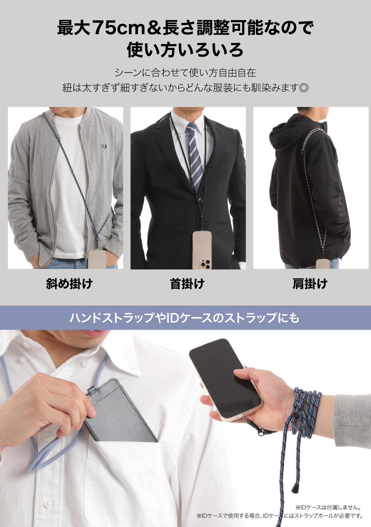 スマホだけでなくIDカートケース用の首から下げるストラップとしても活躍
