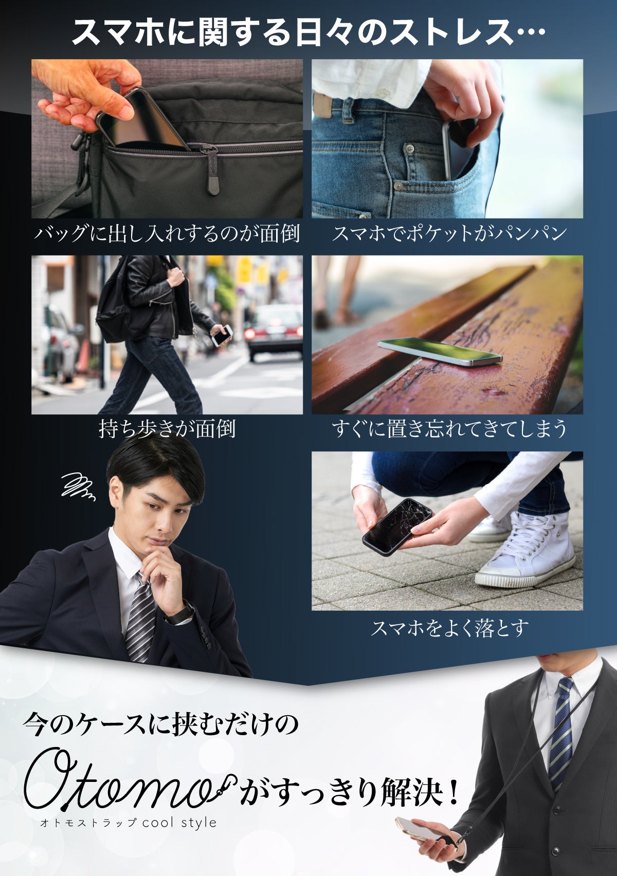 デキる男の2WAYストラップ「OTOMOストラップ-coolstyle-」はスマホも社員証も手ぶらでスマートに使えるショルダーストラップ。