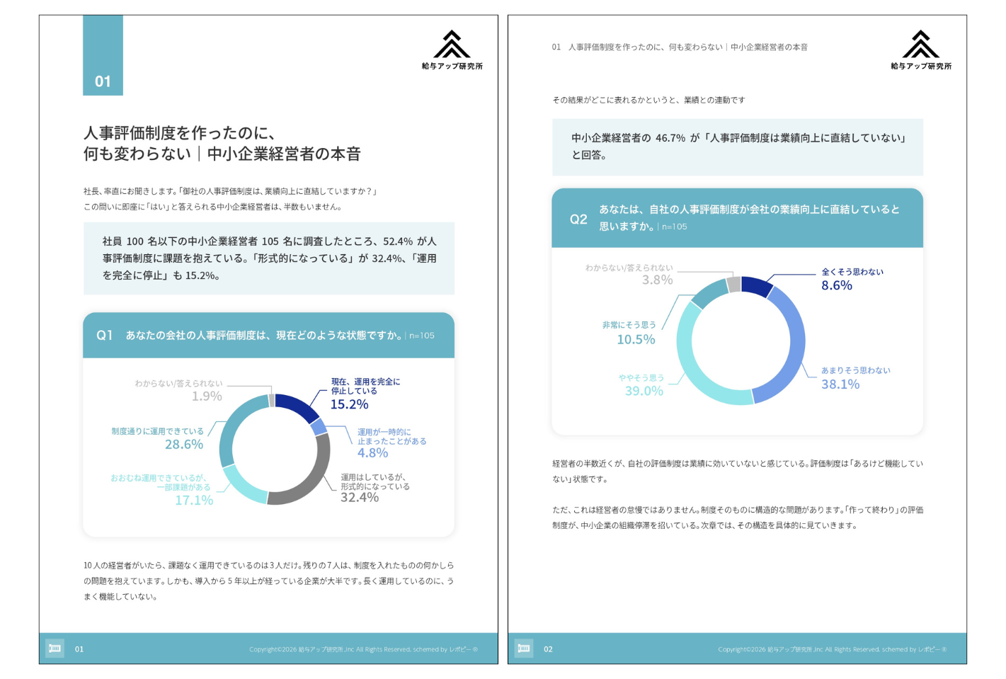 株式会社給与アップ研究所(東京都渋谷区、代表取締役:高橋恭介)は、評価制度が機能しない原因と改善の考え方をまとめた実務資料「成果保証型 人事評価制度構築支援ガイド」を無料公開しました。