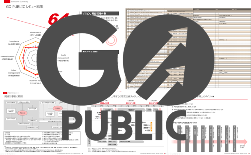 このたび、上場準備時の監査法人による予備調査ではフォーカスしきれない、コンプライアンスやガバナンス、法務面といった組織体制に着目し、TOKYO PRO Market上場のための改善点の洗い出しをサポートする新ショートレビューサービス「GO↗PUBLIC」の提供をスタートいたしました。