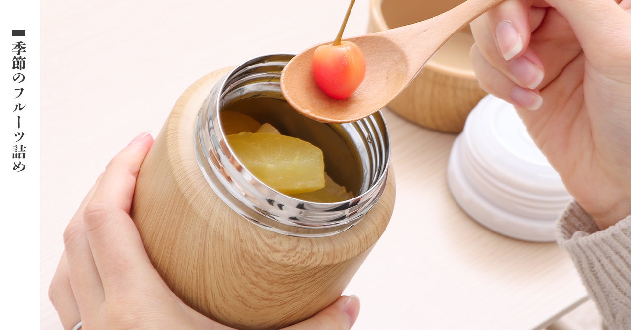 具だくさんのスープやシチュー、カットフルーツなどがたっぷり入ります。ステンレス製の真空断熱構造だから、温かいスープにも冷たいデザートにも使えます。