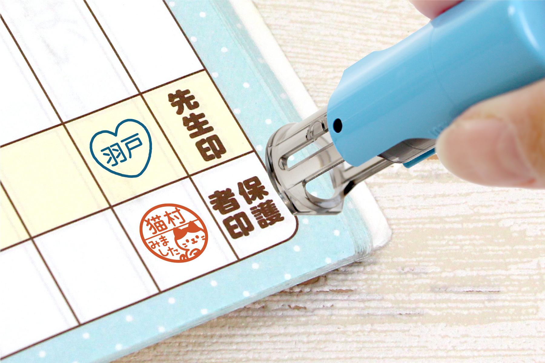 お子さまの連絡帳や音読カードの確認はもちろん、学校や学習塾、オフィスでのチェック印としても使いやすく、かわいさと実用性を兼ね備えたデザイン印鑑です。
