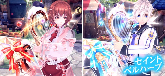 3月19日(水)より、豪華アイテムの獲得に挑戦できる虹色ルーレットにリリ族用衣装アバター「リトルジャーニードレス」や武器アバター「セイントベルハープ」が新登場しました。