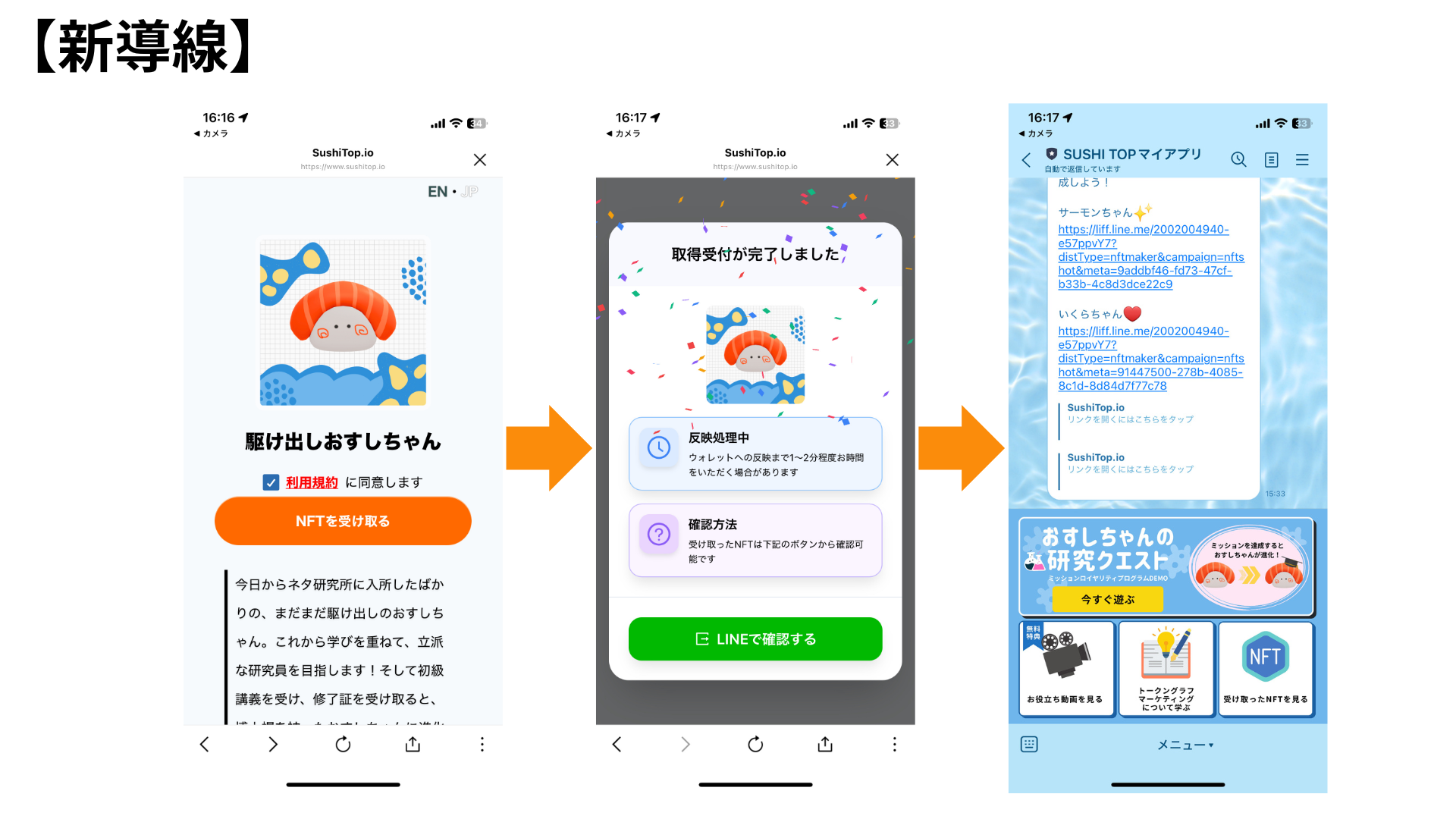 SUSHI TOP MARKETING株式会社(本社:東京都千代田区、代表取締役:徳永 大輔、以下「当社」は、当社独自のNFTの取得導線のUIを変更し、NFT取得時にかかる時間を削減することが実現しました。