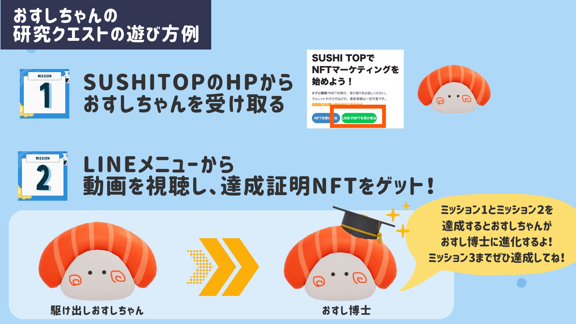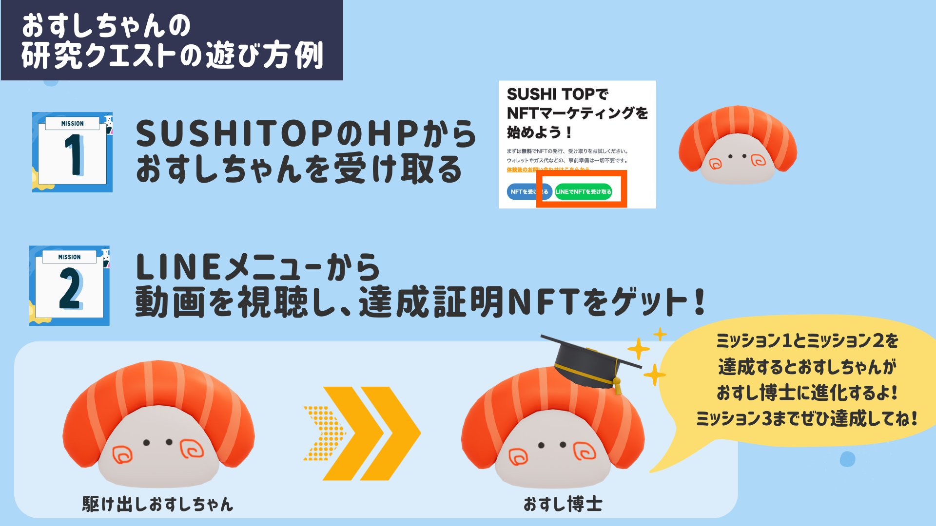 ◾️NFT取得時間の大幅削減の体験が可能な「おすしちゃんの研究クエスト」実施中