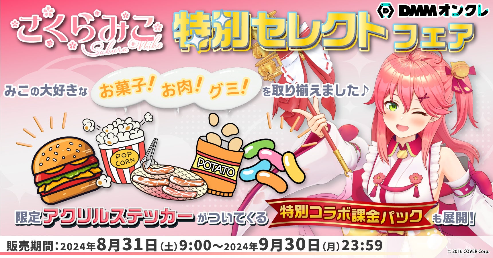 「DMMオンクレ」は、ホロライブ所属VTuber「白上フブキ」さん、「さくらみこ」さんがセレクトした景品を獲得できる「特別セレクトフェア」を開催いたします。