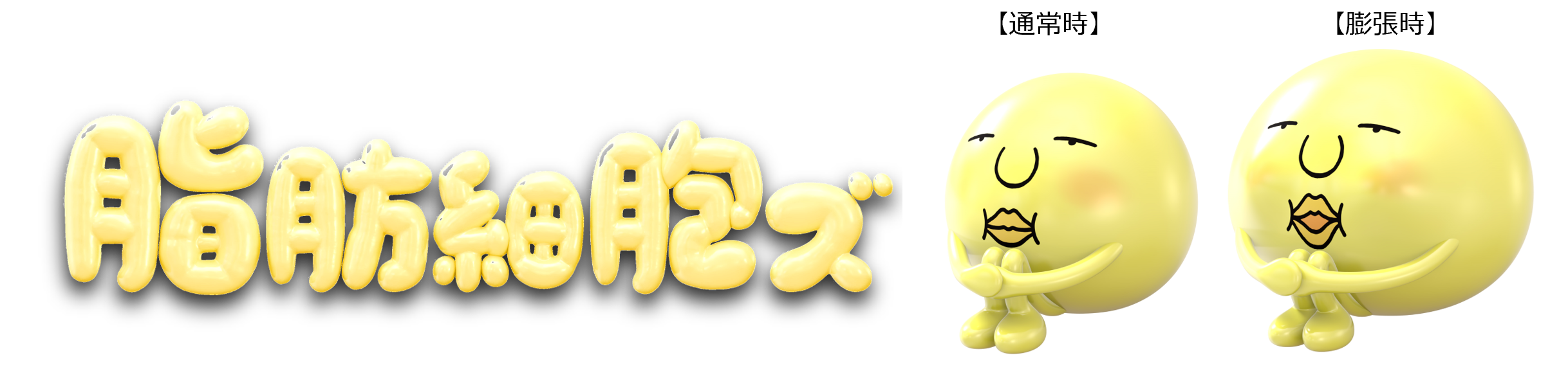 脂肪細胞は誰しもが持ち合わせている、細胞の1つです。1度痩せても、この脂肪細胞が再び大きくなることでリバウンドします。新たなメディカルサイズダウンシリーズのプロモーションでは、この脂肪細胞を憎らしくも、愛らしい印象となるよう『脂肪細胞ズ』としてキャラクター化しました。