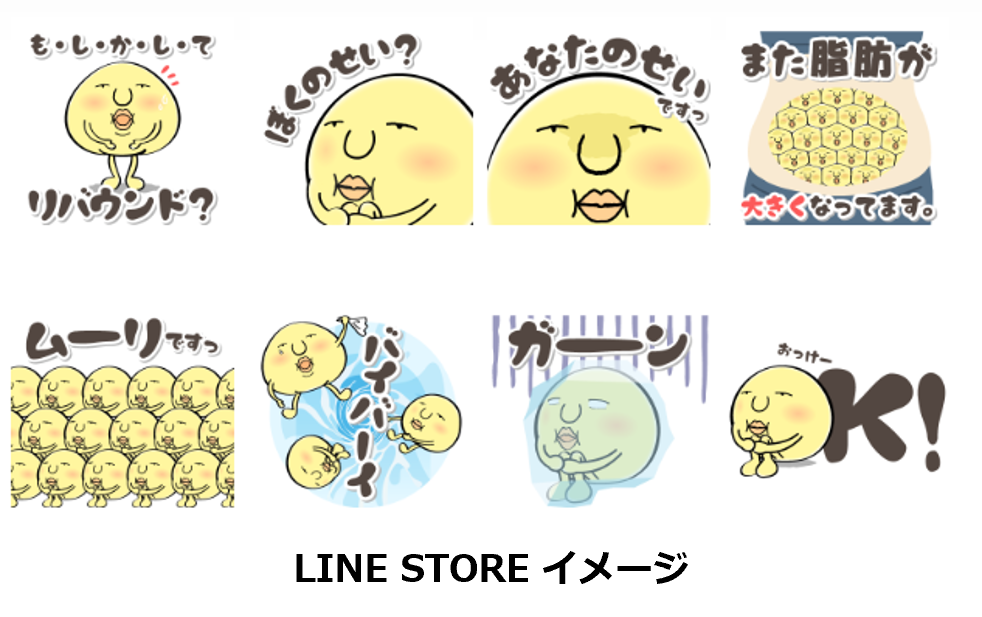 キャラクター誕生記念に伴い、LINEクリエイターズスタンプを発売します。『脂肪細胞ズ』のコミカルな表情は普段使いでき、友達や家族とのコミュニケーションを盛り上げます。