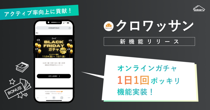 【アクティブ率向上に貢献!】オンラインガチャ1日1回ポッキリ機能実装|クロワッサン新機能リリース