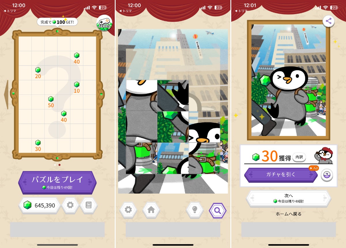 ピースを入れ替えてパズルを完成!クリアするたびに「トリマ」のマイルが貯まる無料ゲームアプリ