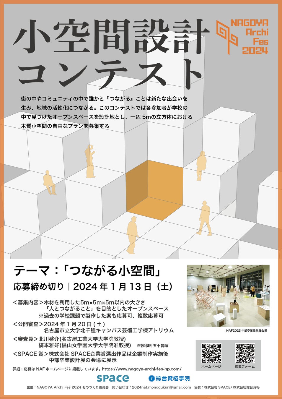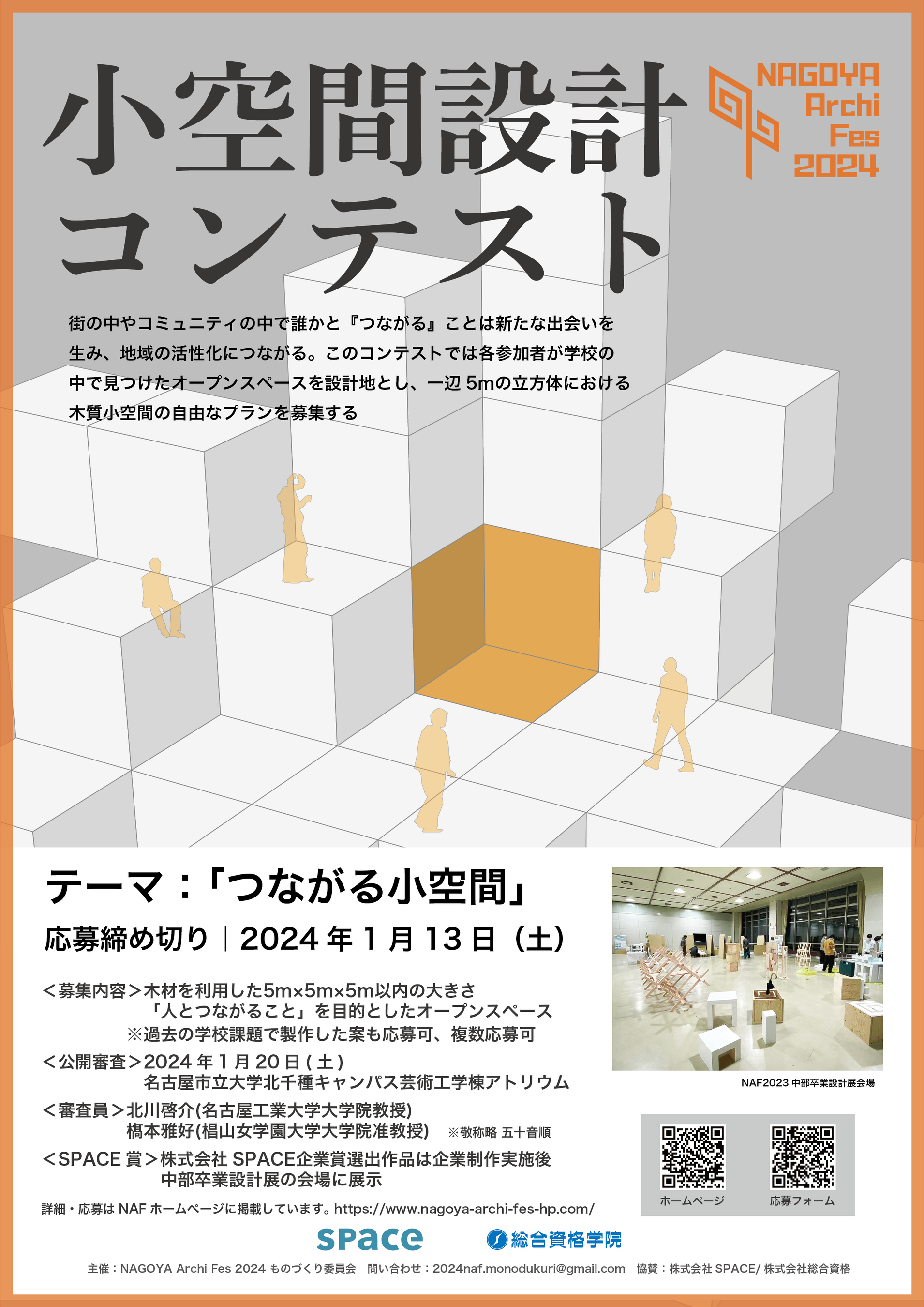 名古屋造形大学 空間作法領域2年生の学生たちの作品が、NAF(NAGOYA Archi Fes)2024「小空間コンテスト2024」にて、優秀賞とSPACE賞を同時受賞しました!