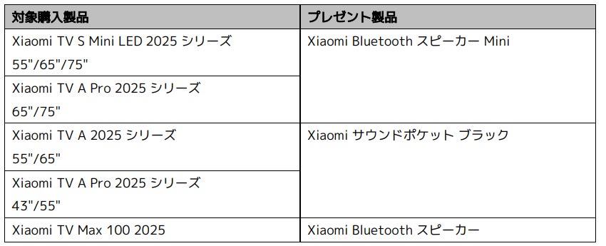 「Xiaomi POP-UP Store」にて対象となるXiaomi TVをご体験いただき、その場で指定のQRコードを通じてXiaomi公式サイト(mi.com)よりご購入いただいたお客様へ、スピーカーをプレゼントします。