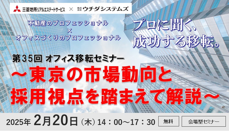 不動産総合コンサルティング会社の三菱地所リアルエステートサービス株式会社(本社:東京都千代田区)と空間のトータルソリューションやシステム環境の提供を行う株式会社ウチダシステムズ(本社:東京都中央区)による会場参加型のオフィス移転セミナーを開催いたします。