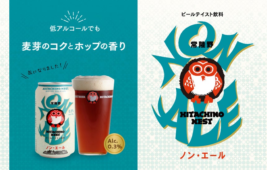 弊社では2003年より0.3%アルコールの低アルコール飲料「常陸野ネスト ノン・エール」330mlを製造してまいりましたが、近年の低アルコール飲料需要の増加に伴い、新たな増産体制のもと、350ml缶で発売いたします。