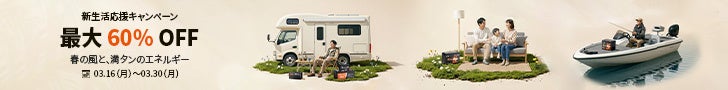 期間中は最大60%OFFで、車中泊やキャンプに活躍するサブバッテリーをはじめ、家庭の防災対策や日常の電力備えに役立つLiFePO4バッテリー、走行充電器、充電器、インバーターなどの周辺機器を特別価格でご提供いたします。