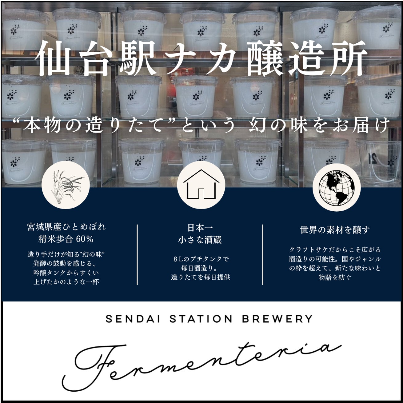 仙台駅ナカで毎日酒造りし、その場で生まれる“本物の造りたて”という幻の味わいを届ける新発想の都市型マイクロ醸造所です。