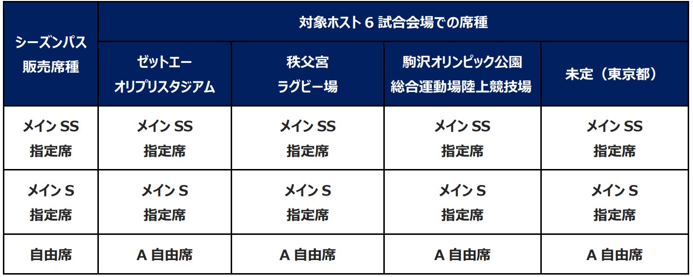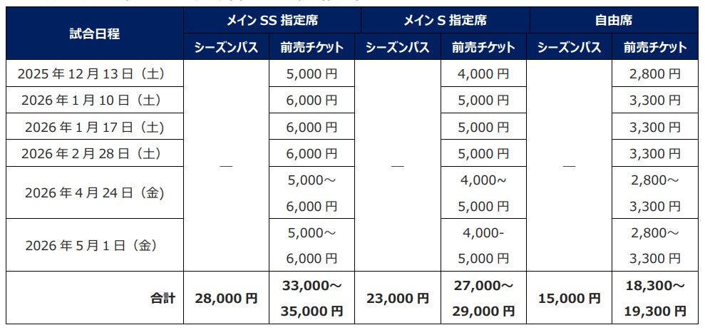 ※前売チケットにおいても、「2025-26シーズンパス(6試合パス)」と同席種、およびその他席種・企画チケット等を販売いたします。