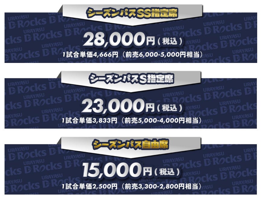 いつも浦安D-Rocksへのあたたかいご声援を誠にありがとうございます。 浦安D-Rocksは、ファンの皆さまからのご要望にお応えし、より多くの試合をお楽しみいただけるよう、初の「2025-26シーズンパス(6試合パス)」の販売を開始いたします。販売期間は、2025年10月15日(水)から10月28日(火)までの期間限定です。本シーズンパス(6試合パス)では、2025-26シーズンの対象ホスト6試合を最もおトクにご観戦いただけるほか、購入者限定の来場特典「メモリアルチケット(全9種)」もご用意しております。浦安D-Rocksの熱い戦いを、ぜひ本シーズンパス(6試合パス)でお楽しみください!